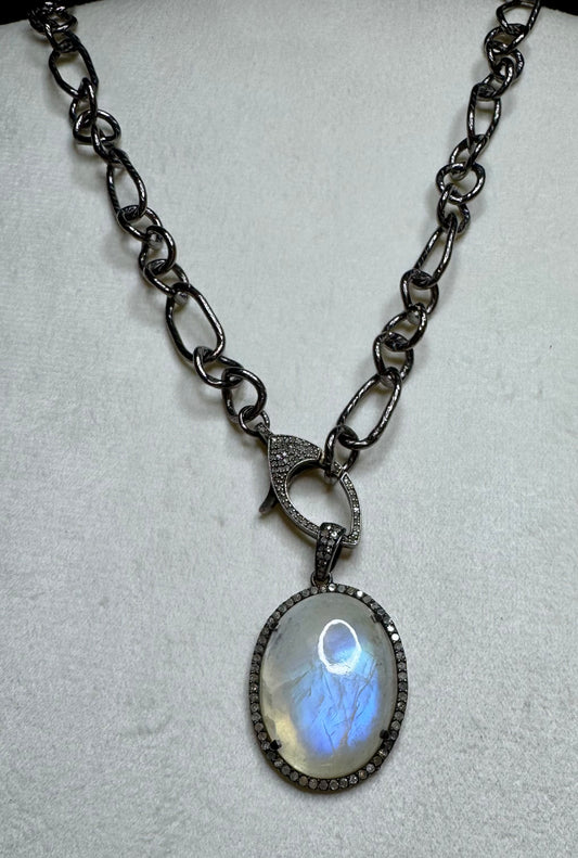 Gunmetal Chain with Pave Diamond Sterling Carabiner