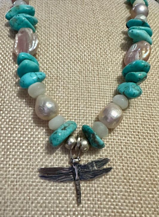 Pearls, Turquoise and a Dragonfly - bcg Black Label