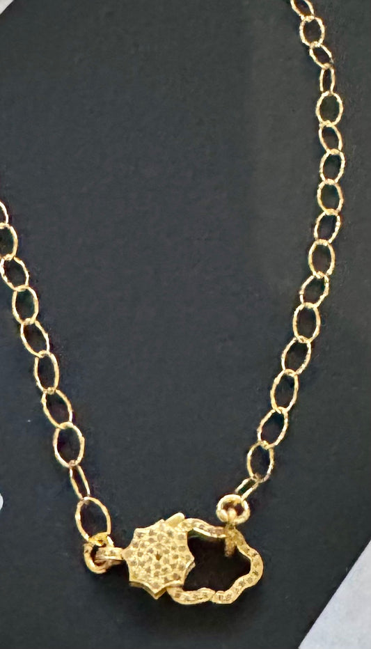 Gold Filled Oval Chain With Diamond Lobster Clasp