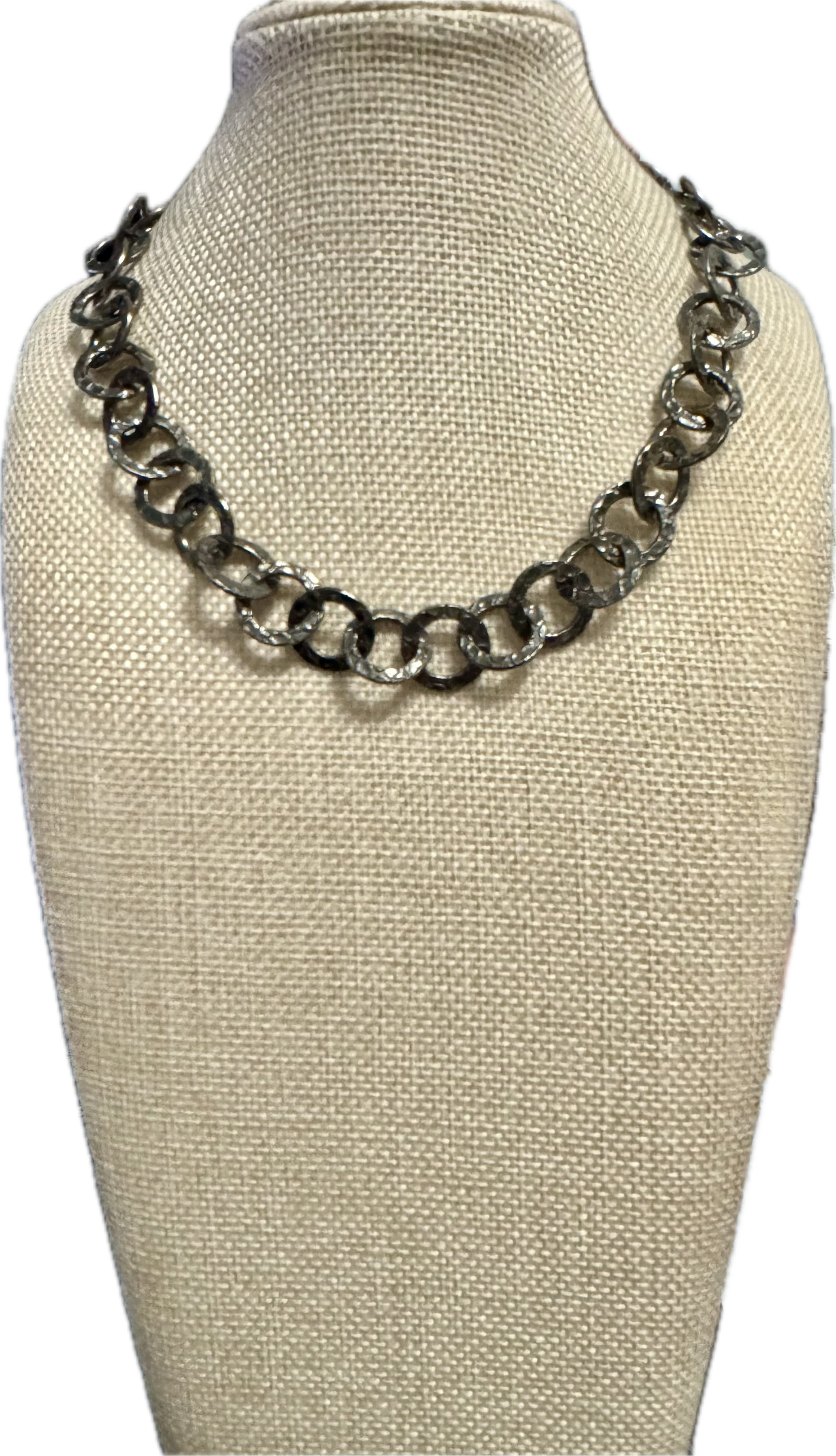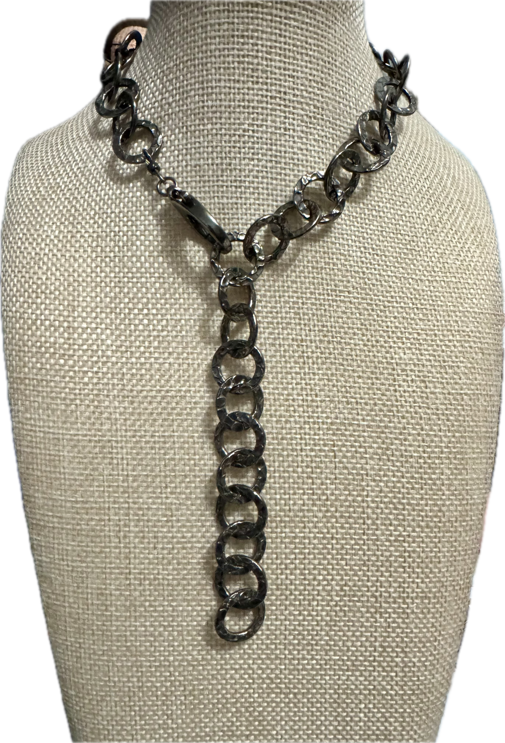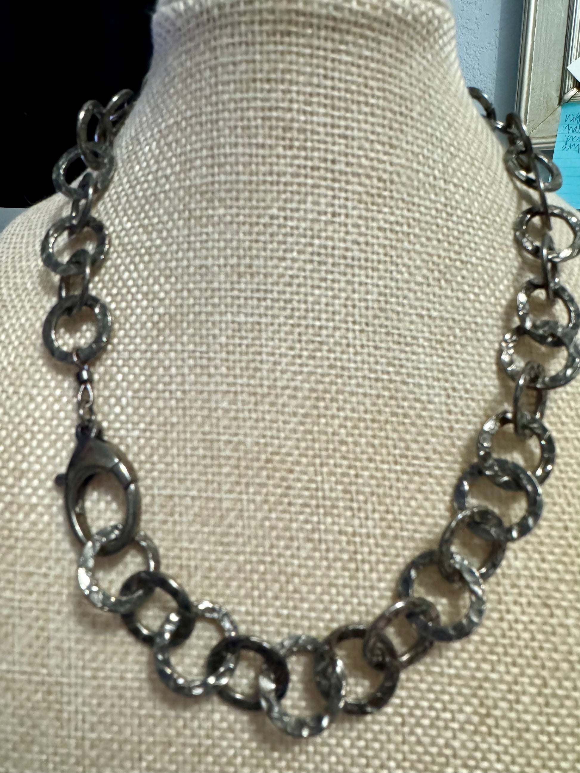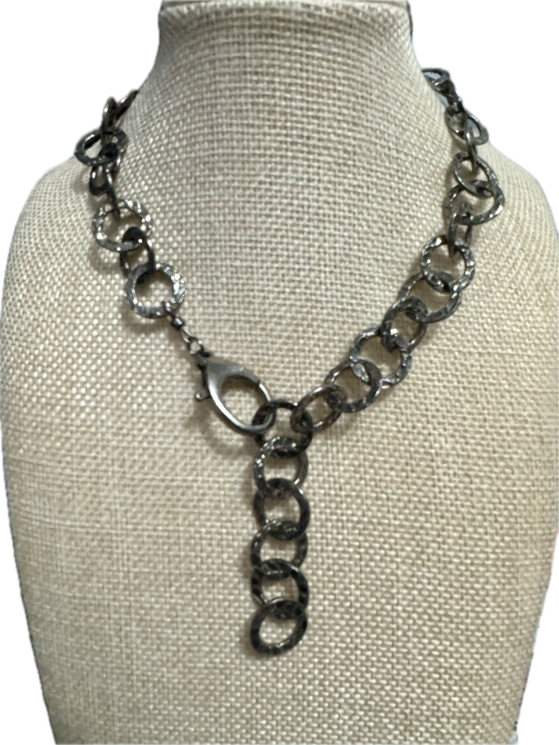 Black rhodium sterling silver circle chain. Stunning and simple without being boring double it and use as a bracelet 16” L. Longer chains available as requested. If you want a custom length, call or email me.